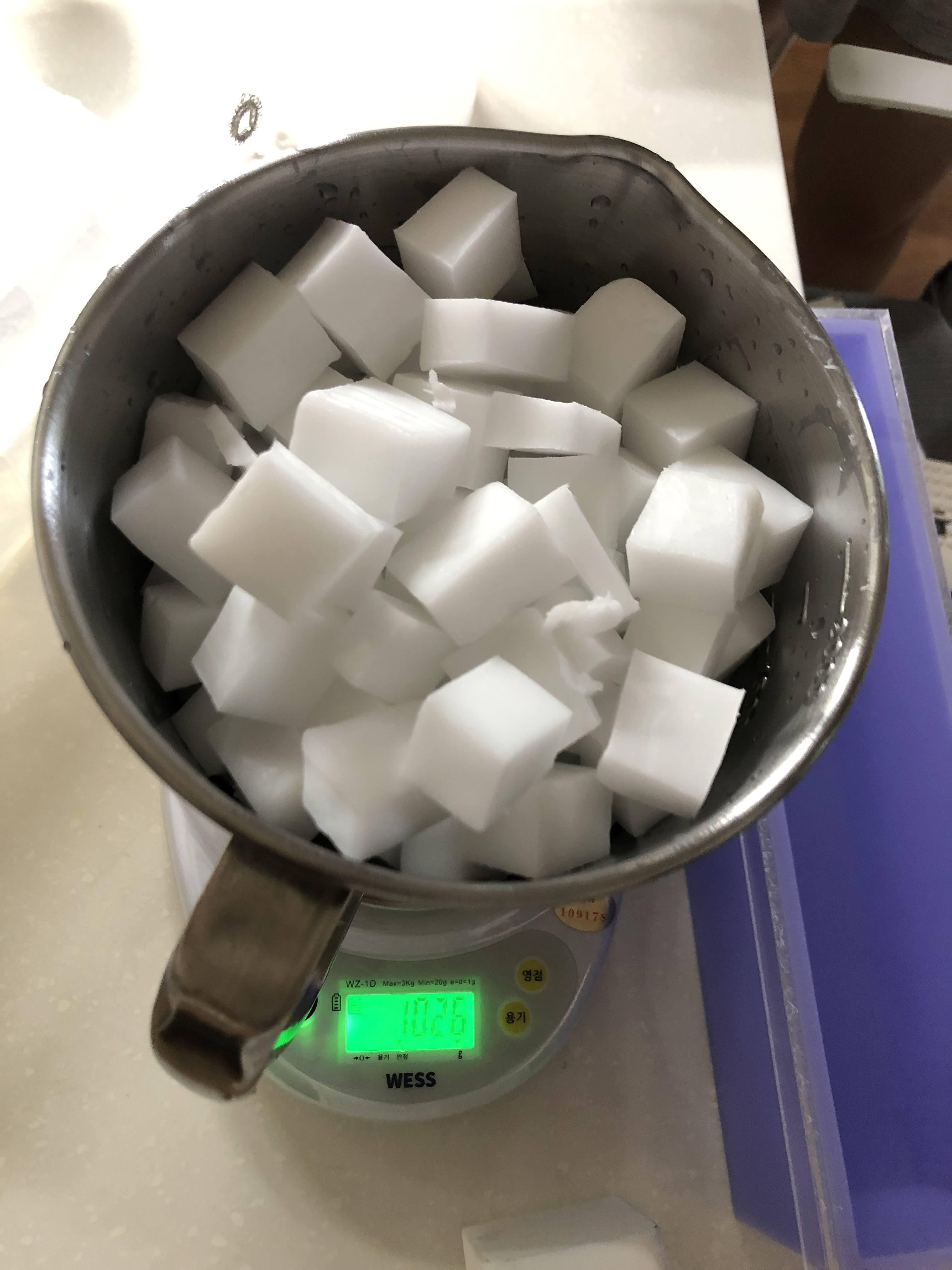 #2. 화이트 MP 비누 베이스입니다. 깍둑썰기 해주세요.